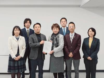 5月13日,春日市議会にて幅広い分野における物的・知的・人的資源の交流と,機会の活用を図るため相互に協力することを目的に「福岡女学院大学との包括連携協定」を締結。背景としては,令和5年4月の春日市議会議員一般選挙において18歳・19歳・20歳代の投票率が極めて低いことから実施に踏み切ったとのこと。主な取組みは,若者の主権者意識の醸成と投票行動の促進事業として「春日市の全新成人に向けて投票啓発のチラシを作成」「学生が投票立会人を経験」「活動を通じて行った研究を九州心理学会で発表」に取り組んでいる。また,選挙管理委員会のみならず教育委員会においても「プログラミング教育」や市長部局では「読み聞かせボランティア」などの取組みも展開している。女学院大学の心理学科の学生を中心に受講学生と教職員とで市議会を訪問・議員へのインタビューなどを経て,年度末には学生による最終報告会を実施していることも特徴的な取組みです。