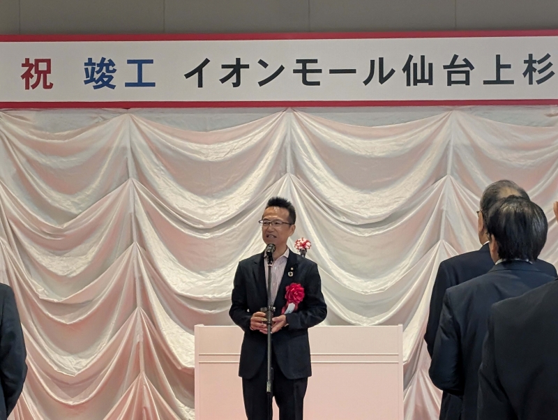 9月28日,イオンモール仙台上杉竣工式が挙行され市議会を代表し出席してまいりました。東北大学農学部の跡地利用にあたっては,都心部に残された貴重な土地という観点から平成25年4月に「東北大学キャンパス移転まちづくり会議」の検討報告書がまとまり,周辺市街地と調和する杜の都の次代の市街地モデルにふさわしい快適な居住環境と,豊かな暮らしを彩るにぎわいと安全・安心のバランスを備えた複合市街地の形成を目指すとのコンセプトのもと開発が進められてきました。平成29年時の説明会では,建設工事予定期間は平成30年から31年で供用開始予定は平成31年9月としていた計画が大幅に遅れ,このたびグランドオープンを迎えることとなりました。周辺地域のみなさんとの調和を図り上杉地域・仙台市の発展に向けて貢献頂くことを期待いたしたいと思います。