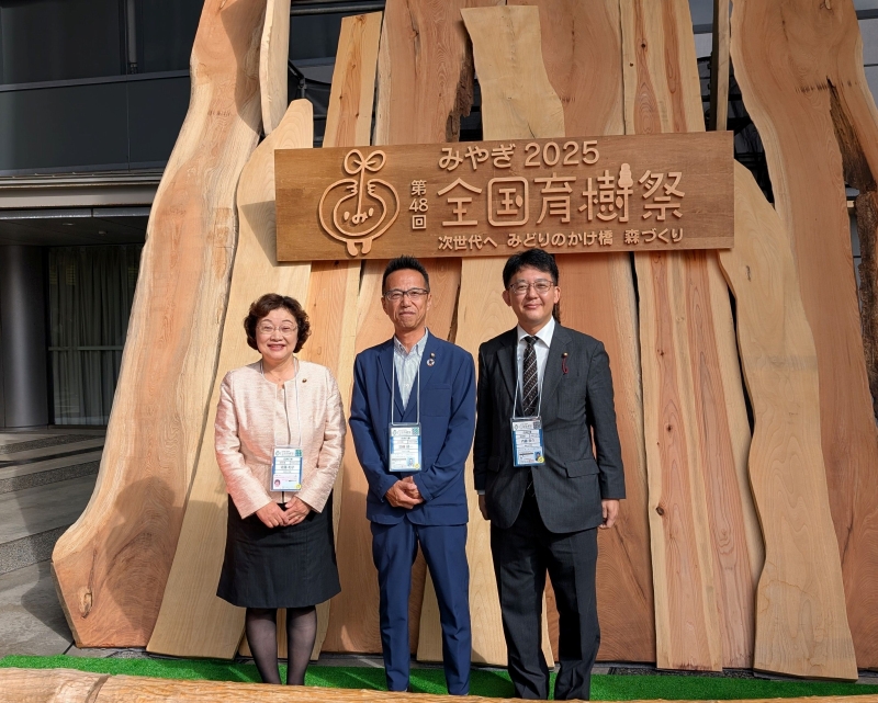 10月5日,みやぎ2025第48回全国育樹祭の大会が開催され出席してまいりました。全国育樹祭は,継続して森を守り育てることの大切さを普及啓発するため,全国植樹祭を開催したことのある都道府県において毎年秋季に行われている国民的な緑の祭典です。秋篠宮皇嗣同妃両殿下のご臨席を仰ぎ盛大に開催されました。東日本大震災により壊滅的な被害を受けた海岸防災林は多くの皆さまのご支援・ご協力により植栽が完了し保全活動を展開するとともに震災の教訓伝承にも取り組んでいます。今後とも健全で活力ある森林を次世代へ繋いでいく重要性を改めて認識した育樹祭でありました。