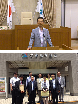 宮古市の環境への取り組みは,平成21年政府より環境モデル都市の認定を受けCO2削減目標を定めてから本格的な取り組みとなったとのこと。さとうきびからのバイオ燃料を活用した自動車の導入などは宮古島市のポテンシャルを活かした特有の取り組みであります。また,厳しい自然環境にある宮古島は過去に干ばつなどによる大打撃を受けてきたことから豊富な地下水を利用し,地下に貯水ダムを建設の上農業用水として利用しておりますが,今後自動的に組み上げるポンプシステムのピークシフトも予定しているとのことで,電力消費のピークカット・負荷移行に行政として取り組んでいることは特徴的であり本市としても参考とすべき内容でありました。